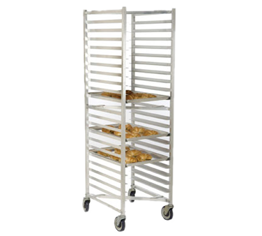 Focus Foodservice - Sheet Pan "Z" Rack, 70"H, (20) pan capacity, end-load, 3" slide spacing, nesting design, 6063-T5 all welded aluminum construction, (4) 5" non-marking, polyurethane casters -2 swivel & 2 swivel with brakes, NSF